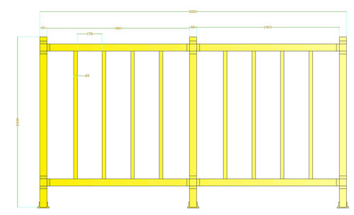 b、根據護欄的規(guī)格型號,將對于的型材類產品進行切割、打磨等工作。以1m寬,1m高的護欄為例,首先將橫撐件和豎撐配件先切割成1m的尺寸,在將扶手按照同樣的方法切割;