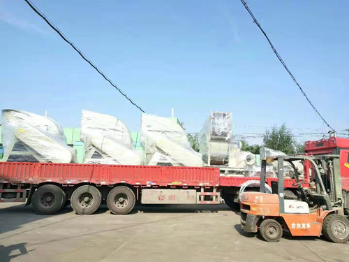 天津靜海某電鍍園區(qū)內(nèi)一客戶在我司采購了4臺10C的玻璃鋼離心風機,電動機功率均是37kw。按照本公司提供的玻璃鋼離心風機參數(shù)表,該型號風機的額定風量為54000cmh,風壓2000pa,風機葉輪的轉(zhuǎn)速為1550rpm。下面是4臺10C的玻璃鋼離心風機發(fā)往天津靜海圖展示。